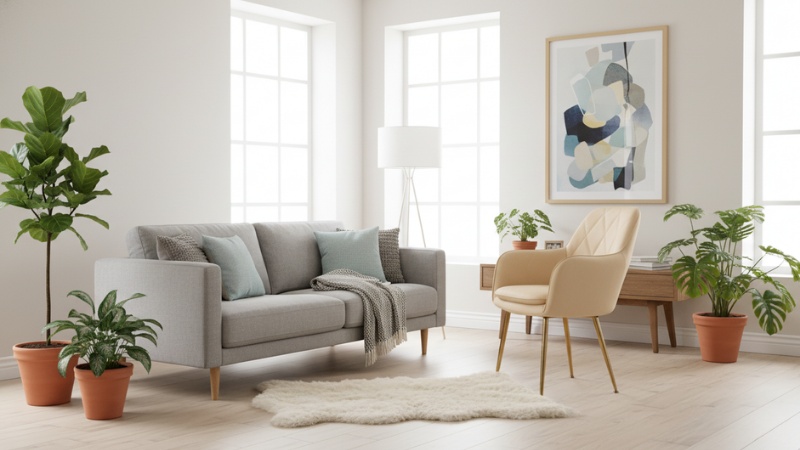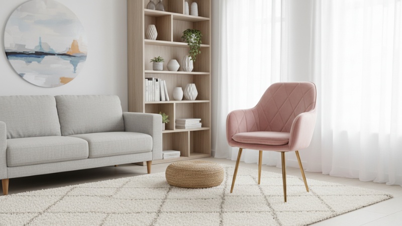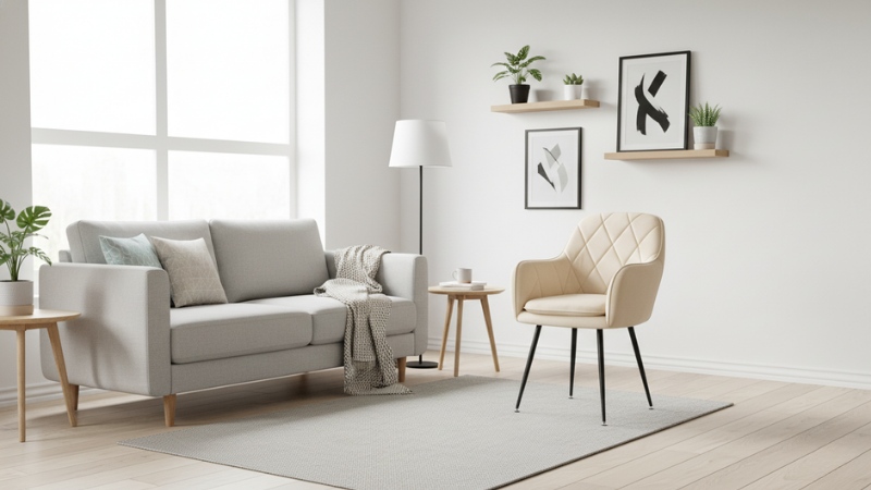 La armonía visual es fundamental cuando trabajas con metros cuadrados limitados. Elige un sitial cuyo color complemente tu sofá principal sin competir con él. Los tonos neutros como beige, gris o camel funcionan especialmente bien porque se integran con cualquier paleta decorativa y no fragmentan visualmente el espacio.
